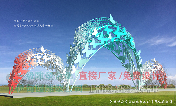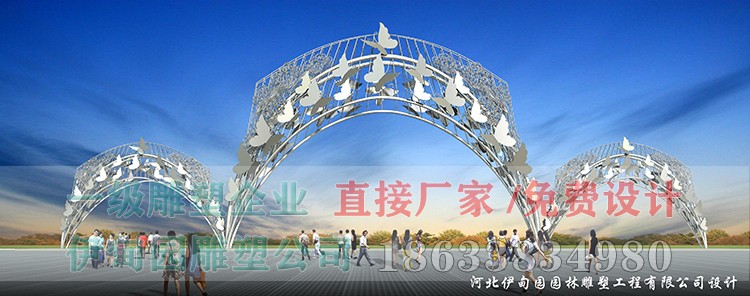 大門(mén)不銹鋼雕塑制作流程:設(shè)計(jì)圖紙→骨架放大→板材鍛造→整形修復(fù)→焊接成型→環(huán)氧底漆→氟碳面漆→分節(jié)運(yùn)輸→工地安裝。