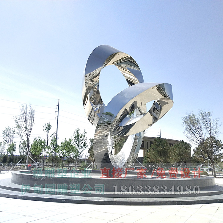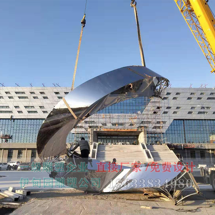 水紋鏡面不銹鋼雕塑,高11米,寬9米,安裝于吉林省某學(xué)校。雕塑從設(shè)計→訂制小樣→主體制作→物流運輸→現(xiàn)場安裝→細(xì)節(jié)處理,共歷時3個月。不銹鋼雕塑主骨架采用219*6mm鍍鋅鋼管制作,防腐性能好、牢固穩(wěn)定!所有承重骨架采用雙面滿焊,整體骨架完成后用防銹漆滿涂三遍。雕塑外輪廓為抽象e造型,外部裝飾板采用304#鋼板,緊貼著骨架外形進(jìn)行拼裝,焊接。