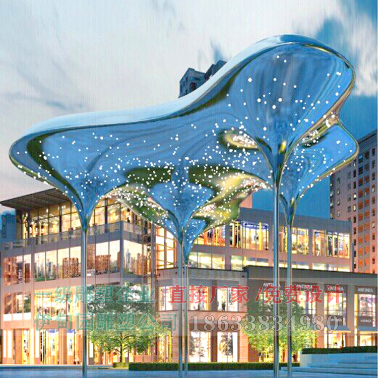 “燈光雕塑”的主體材料一般采用不銹鋼為多,以亞克力板、PC板、玻璃鋼等半透板為表面發(fā)光材料。當(dāng)然,主體材料也可以選用其它任何材料。光源多采用L E D鑲嵌燈、泛光燈等。燈光的合理使用,也是作品成功的關(guān)鍵所在。