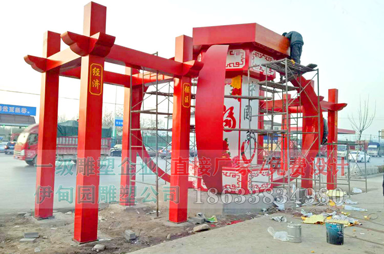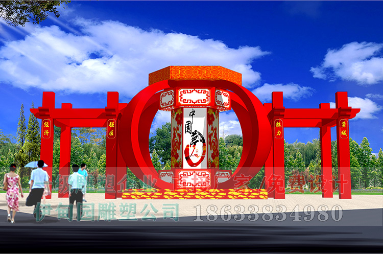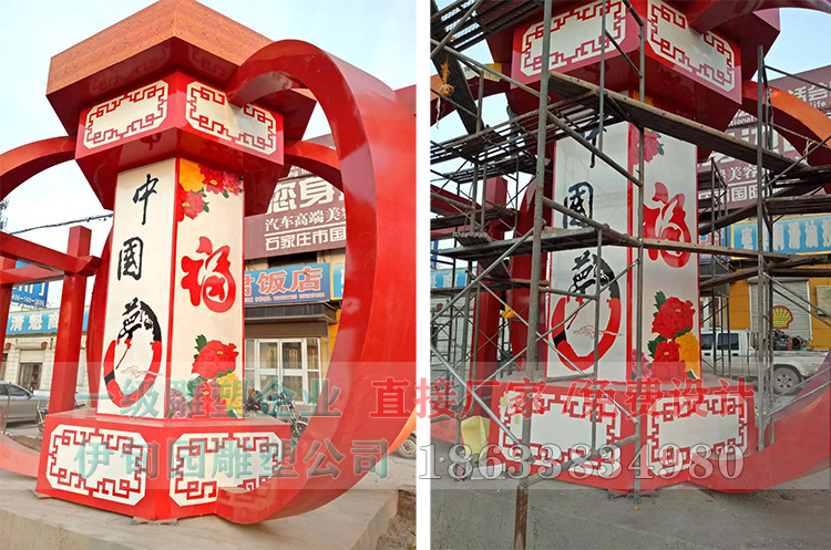不銹鋼宮燈雕塑,總長(zhǎng)12.5米 高5.5米,安裝于河北省某商業(yè)街綠化帶。雕塑以該城市特色“宮燈”為主題,八角立柱為支撐,柱子上分別寫有魅力、藁城、經(jīng)濟(jì)、強(qiáng)區(qū)八字,凸出了藁城市響應(yīng)國(guó)家號(hào)召,大力發(fā)展經(jīng)濟(jì)的寓意。