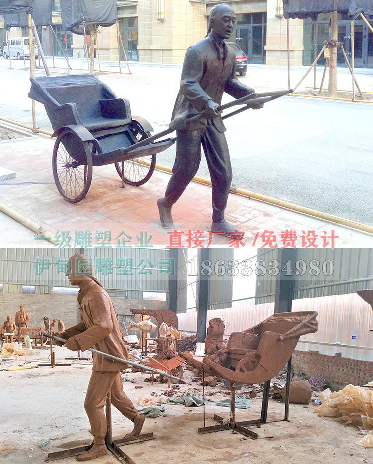 拉黃包車(chē)雕塑,雕塑以老上海民俗風(fēng)情拉黃包車(chē)人物原型制作,體現(xiàn)民國(guó)時(shí)期文化特色。拉黃包車(chē)雕塑實(shí)用性強(qiáng),可供游客落座拍照,受到大眾的喜愛(ài)!