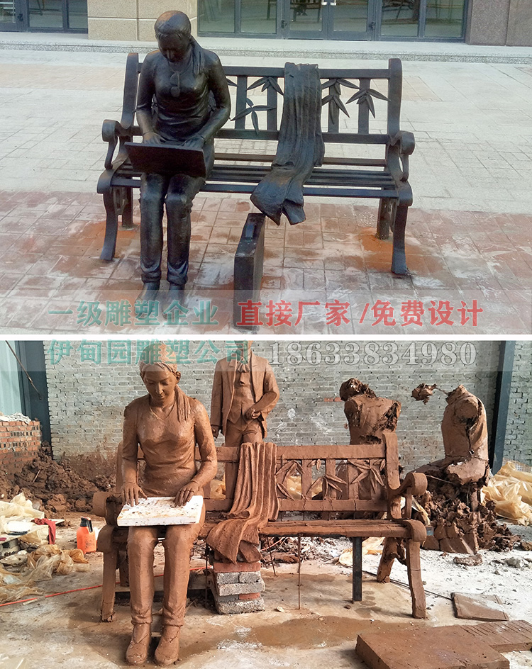 景觀座椅雕塑,女孩坐在座椅上聚精會(huì)神的敲擊著電腦,周?chē)h(huán)境仿佛已經(jīng)靜止。雕塑實(shí)用性強(qiáng),可供游客落座休息。