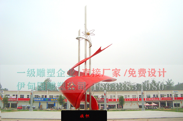 藝術(shù)紅旗不銹鋼雕塑運(yùn)用抽象設(shè)計(jì)理念,提升雕塑整體的藝術(shù)感,造型新穎飄逸,增強(qiáng)紅旗雕塑強(qiáng)烈的視覺效果。紅旗不銹鋼雕塑蘊(yùn)含的深厚感情及不朽的藝術(shù)生命力獨(dú)立于世,與城市的公共文化相結(jié)合。