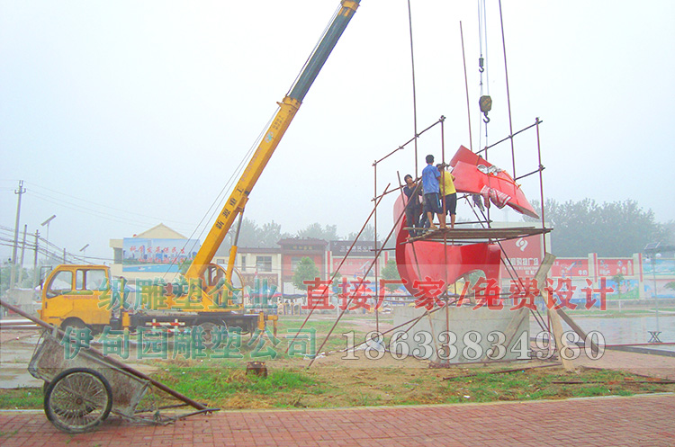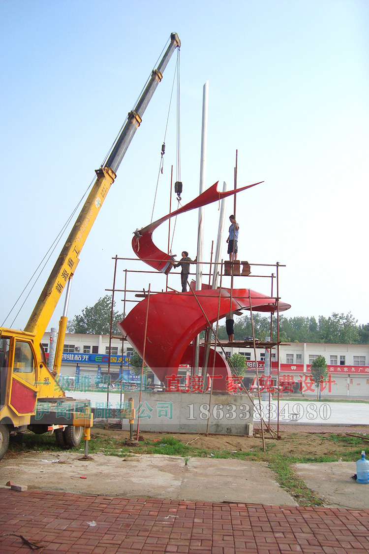 藝術(shù)紅旗不銹鋼雕塑,高12米,安裝于山東省某城市廣場。紅旗雕塑采用不銹鋼鍛造工藝制作,鍛造是一種以不銹鋼板材為制作基礎(chǔ)的工藝類型,其特點(diǎn)是根據(jù)板材的特性進(jìn)行敲打加工處理。它的裝飾性、工藝性強(qiáng),尤其是工細(xì)繁瑣的制作過程,都表現(xiàn)出了獨(dú)特的雕塑藝術(shù)個(gè)性,這也是不銹鋼雕塑越來越受到關(guān)注和追捧的原因之一。