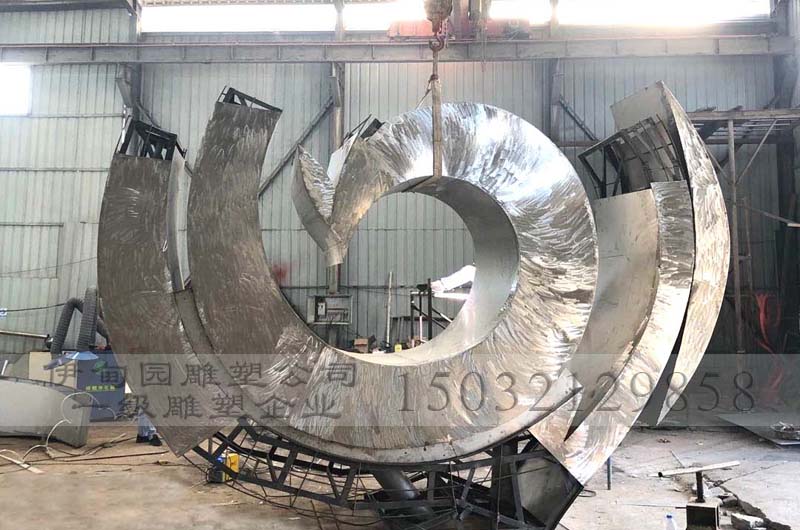 不銹鋼抽象鳳凰雕塑,高8米,安裝于河北省邯鄲市峰峰礦場(chǎng)公園。鳳凰不銹鋼雕塑制作過程:確認(rèn)雕塑設(shè)計(jì)稿→制作1:1雕塑模型→裁料鍛造→拼裝焊接→打磨拋光→噴汽車漆→運(yùn)輸安裝。