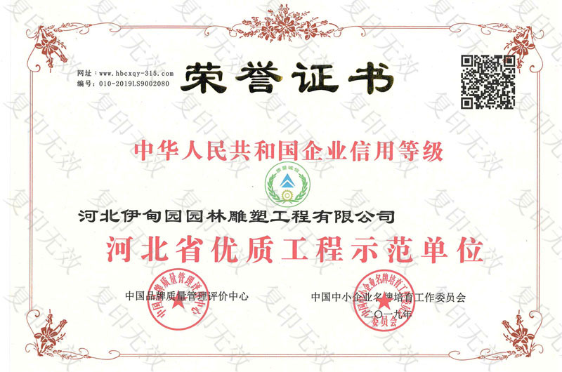 河北伊甸園園林雕塑工程有限公司榮獲河北省優(yōu)質(zhì)工程師范單位