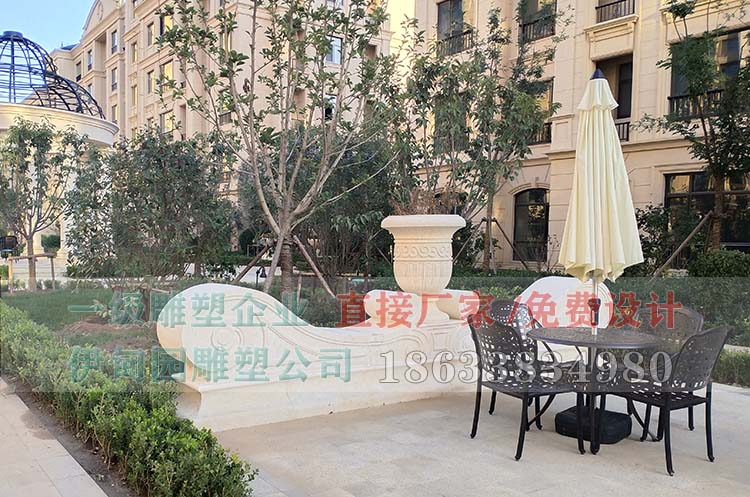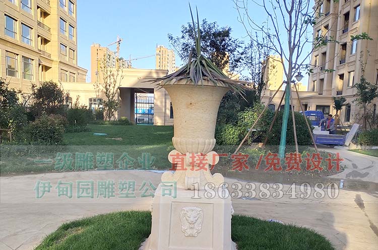 埃及米黃石雕花盆,安裝于山東省某歐式住宅區(qū)。