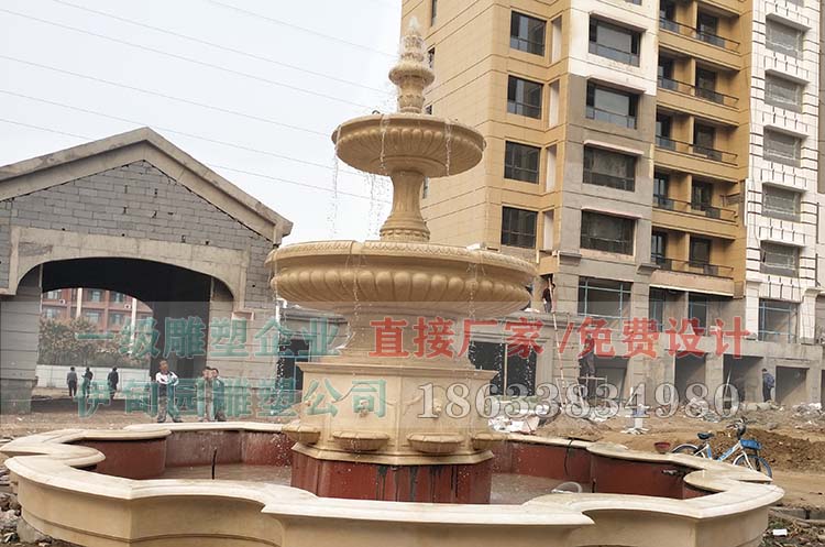 歐式埃及米黃噴泉,安裝于山東省某歐式住宅區(qū)。埃及米黃材質(zhì)噴泉,精致典雅,凸顯小區(qū)濃濃的歐式風(fēng)!