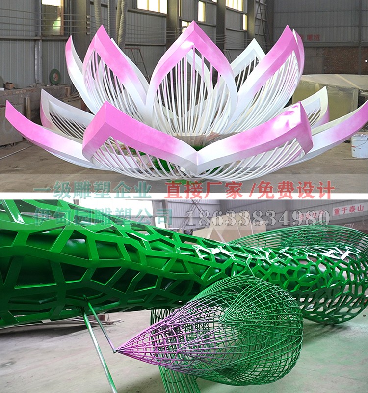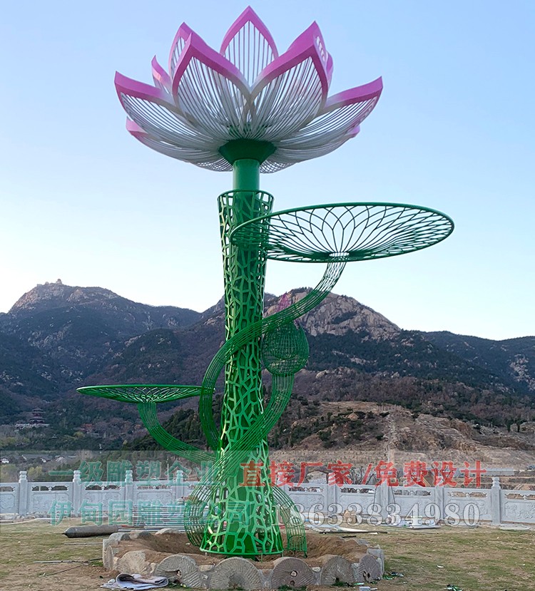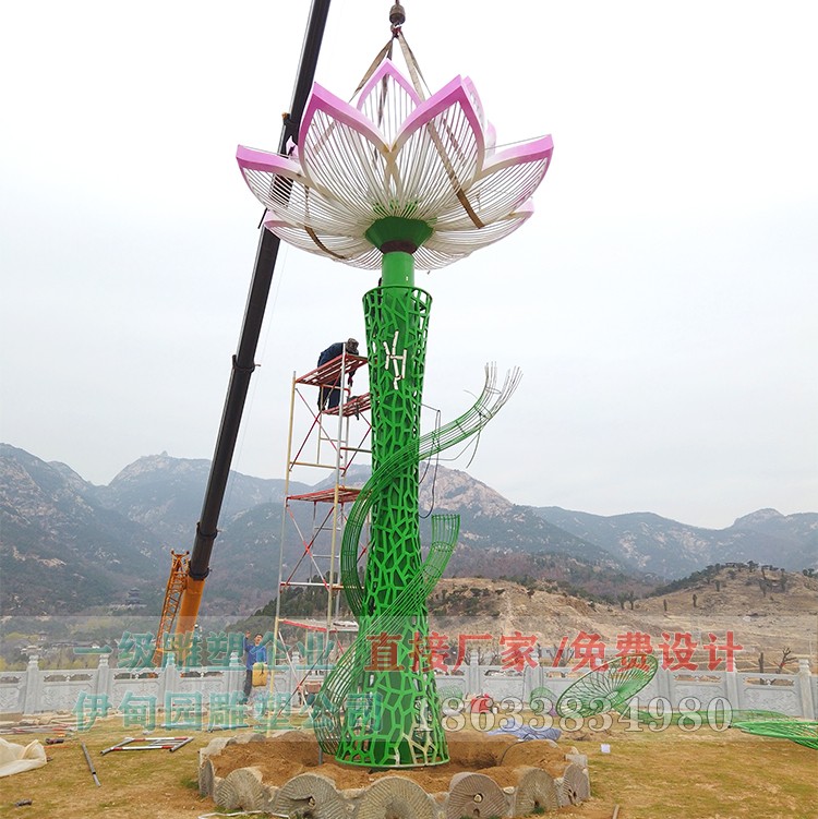 由我公司設(shè)計制作安裝完成的蓮花景觀雕塑順利竣工,這座蓮花雕塑高8米,是由蓮花為原型設(shè)計的一款雕塑,該雕塑安裝在某個景區(qū)的蓮花池園。蓮花歷來被佛教尊為神圣凈潔之花,并且極力宣傳并倡導(dǎo)學(xué)習(xí)荷花的這種清白、圣潔的精神。除此之外,周敦頤在名篇《愛蓮說》中也明確表達(dá)了自己對荷花的喜愛:“予獨愛蓮之出淤泥而不染,濯清漣而不妖”,具有"花中君子"的美譽(yù)。不銹鋼雕塑制作流程首先根據(jù)客戶的要求設(shè)計出不銹鋼雕塑造型,因為雕塑擺放的位置是蓮花園,所以蓮花不銹鋼雕塑就成了首選,成了的標(biāo)志性雕塑。