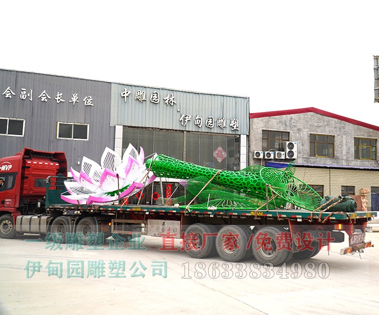 蓮花的不銹鋼雕塑經(jīng)過設(shè)計出圖,打印小樣,不銹鋼雕塑各種鍛造工藝,上色等等工序,終于完工,裝車準(zhǔn)備運往安裝工地。